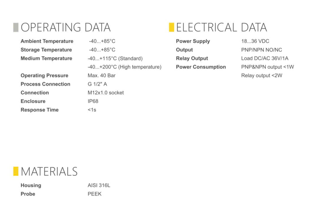 Để có thể hiểu sâu hơn về cảm biến báo mức đầy cạn on/off, chúng ta cần điểm qua một số thông số kỹ thuật của thiết bị.